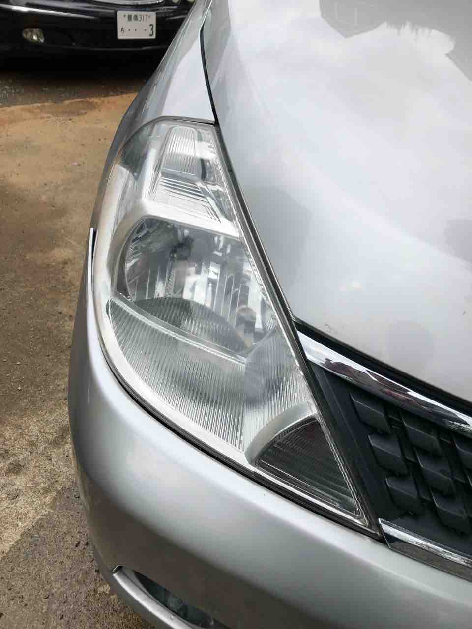 2020年04月01日 ヘッドライトの黄ばみ落とし 義理の父の形見の日産ティーダ お約束のヘッドライトカバーの劣化です。左右ともに上半分の黄ばみやクモリがあります。今回使うのは、ガラスのウロコ取りと潤滑剤のWD40です。水に濡らしながら軽く擦ると黄ばんだ水着が流れてきます。ある程度綺麗になったら1500〜2000番の耐水ペーパー等で滑らかにします。その後WD40を吹き付けティッシュで塗り込みました。作業時間は片側5分程です。新品のようとまでは行きませんが十分実用に耐え、満足のいくレベルです。