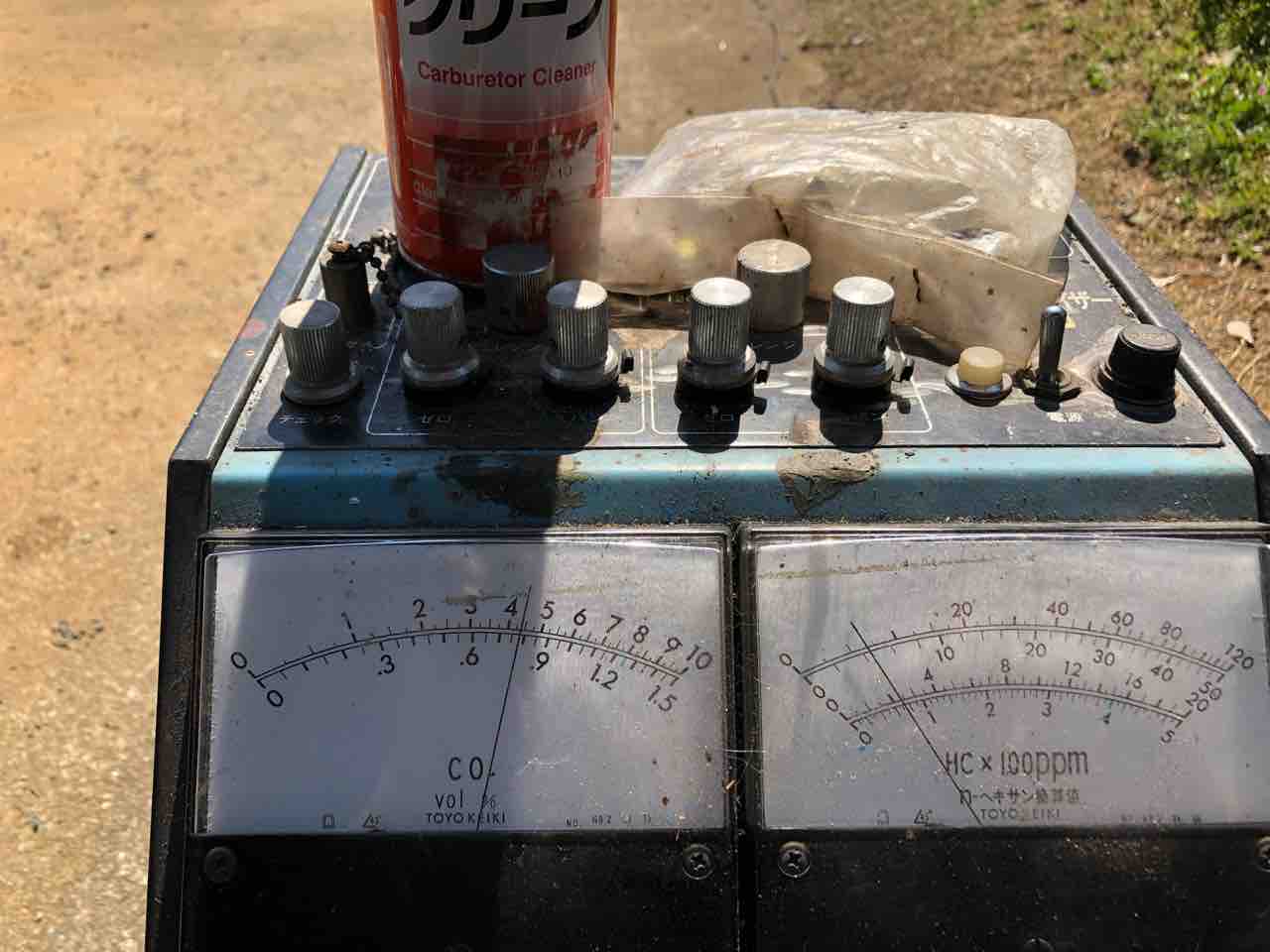 2020年04月07日 排ガス測定機 以前入手した排ガステスターで、バンプラの排ガス測定をしてみます。先ずは電源を入れてゼロセット車の暖気をしたらプローブを入れて数値が落ち着くのを待ちます。何とCO値は振り切っています。レンジを大きくしてもダメ👎壊れたかと思ってティーダ の測定をしてみると両方とも指針一目盛り以下で正常の様です。次にSUキャブのジェット交換をして再測定初めはそれ程変わりませんでしたが、ジェットの調整ナットを上げていくと数値が少し落ち着きました。さらにキャブクリーナーを吹き付けさらに少し改善基準値 現行車CO 1%HC 300ppm基準値 使用過程CO 4.5%HC 1200ppm今のところCO 4.2%.HC 250ppm一酸化炭素数値を大幅に改善しなくてはなりません。
