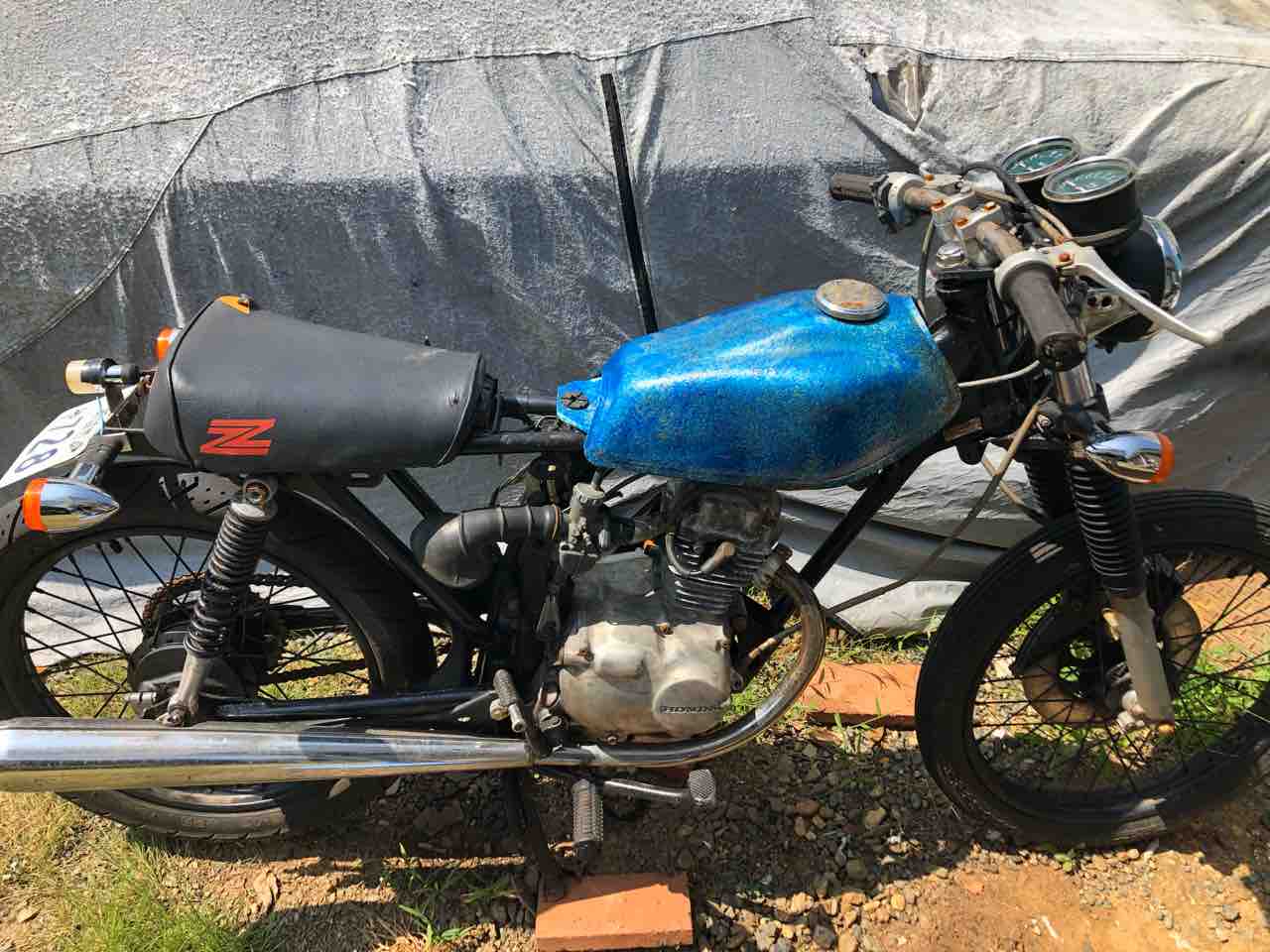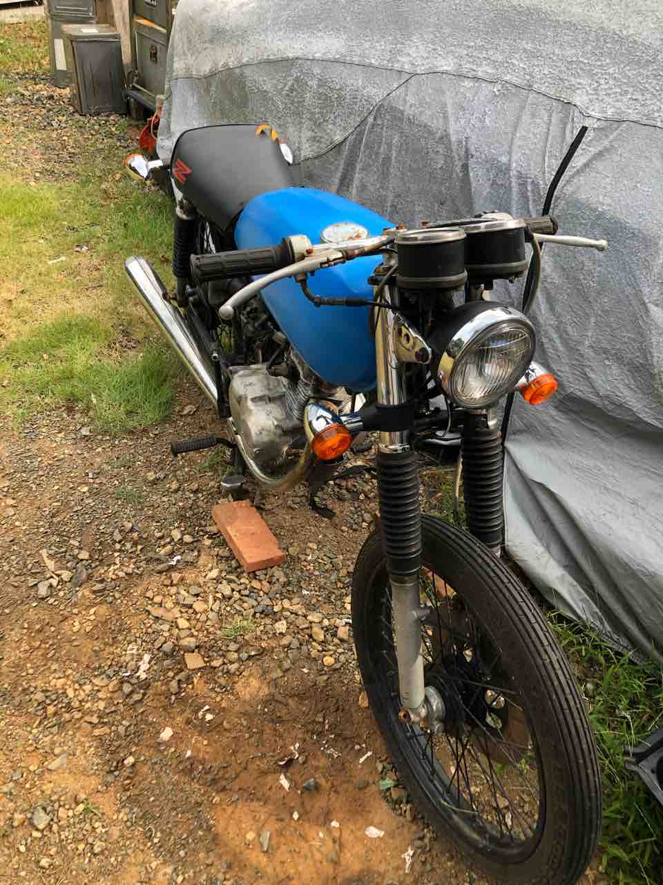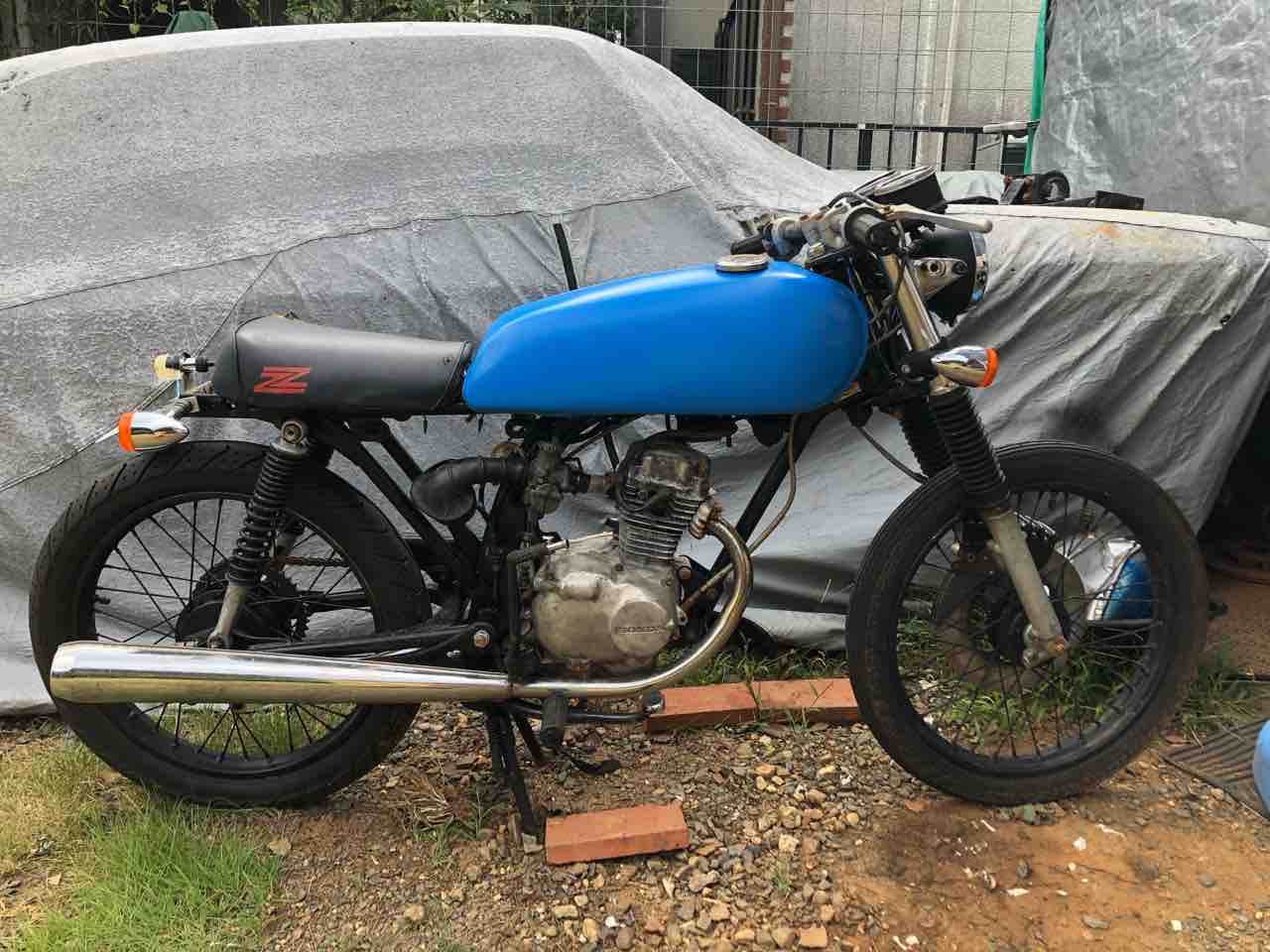 2020年08月23日 CB50の再生 その23 タンク仮付け タンク処理があと1歩のところで止まっているCB 50です。現在は仮のXLタンクですが、せっかく塗ったCB90JXタンクがあるので仮付けをしてみました。いい気になってガソリンを1リットル程入れて久しぶりにキックしてみました。エンジンかかりませんでした 火花は良いので多分スローが詰まってます。タンクとコックから僅かに漏れてますFRPでパテ作って穴塞ぎしてみようと思います。