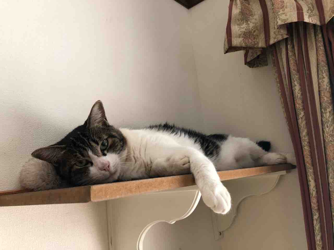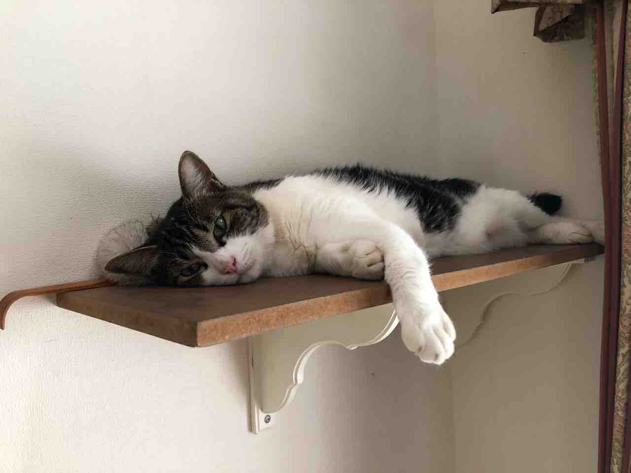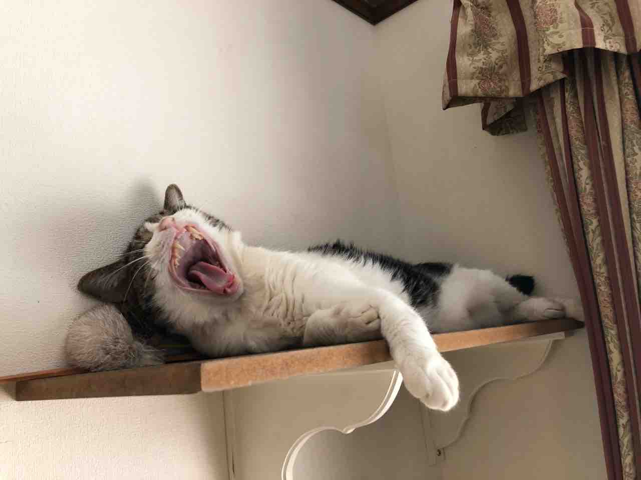 2020年08月23日 9割部屋飼いネコ カイ カイくんはトイレや短時間のパトロール以外ほとんど家の中にいる9割部屋猫です。最近7割庭ネコのウニちゃんのお気に入りの場所を見つけてくつろいでいます。近くに行ってだらんとした前足をチョイチョイしてみると面倒くさそうに目を開けました。でもアクビをしてまた元に戻るそうです。折角の日曜日なんだから遊んでくれよー