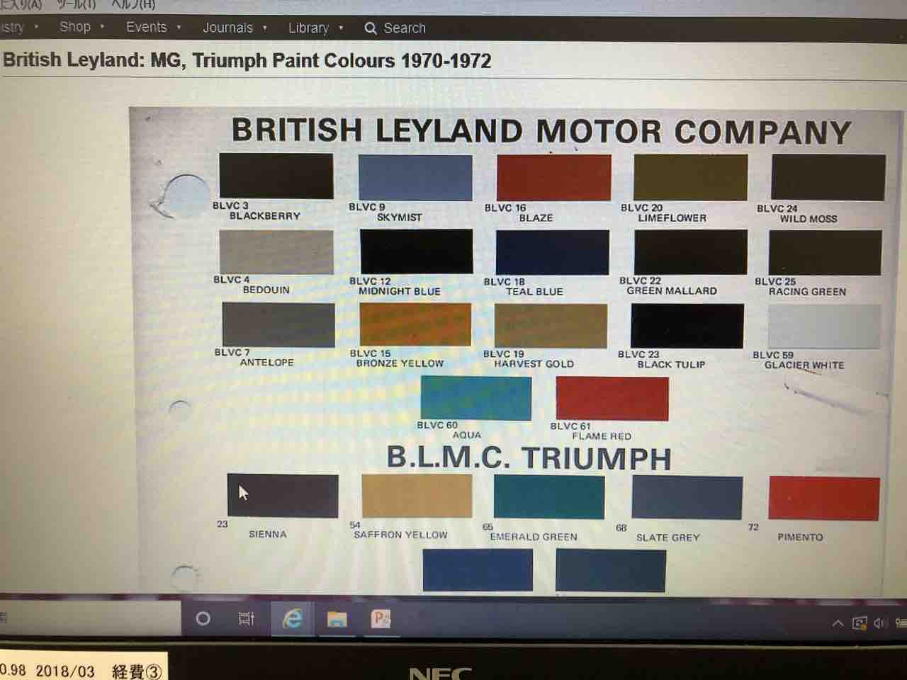 2020年08月25日 カラーコード バンプラ の紺色はおそらくブリティッシュレイランドのミッドナイトブルーと言う色のようです。今、お願いしている板金屋さんでは、ロックペイントを使っており、その色見本から近い色を探して寄せていく事になります。なるべく英国車の色をベースにしたいのです。