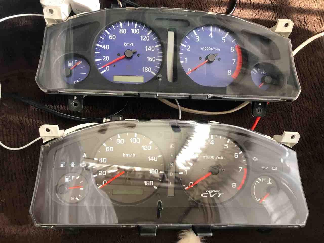 基盤の型番はやはり違いますが、異なる点は主に警告灯と位置や種類、あとはCVTようなのでシフトポジションのインジケーターに違いがあります。