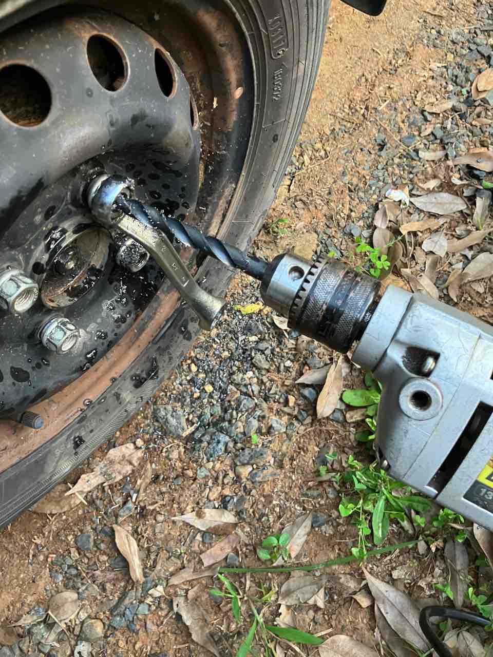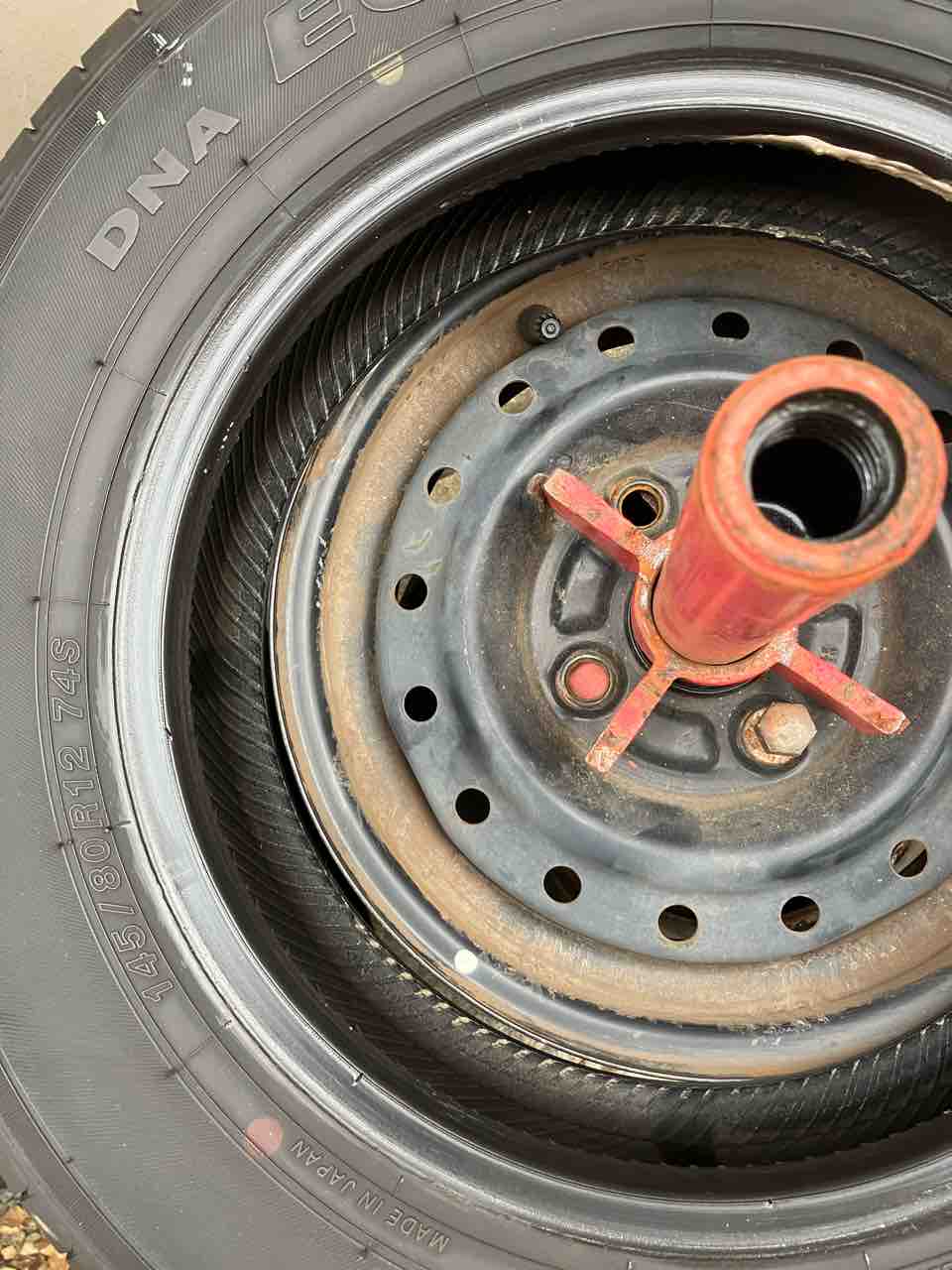 サンバーのホイールを交換してしようとホイールナットを外しました。