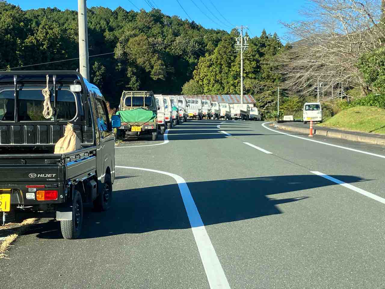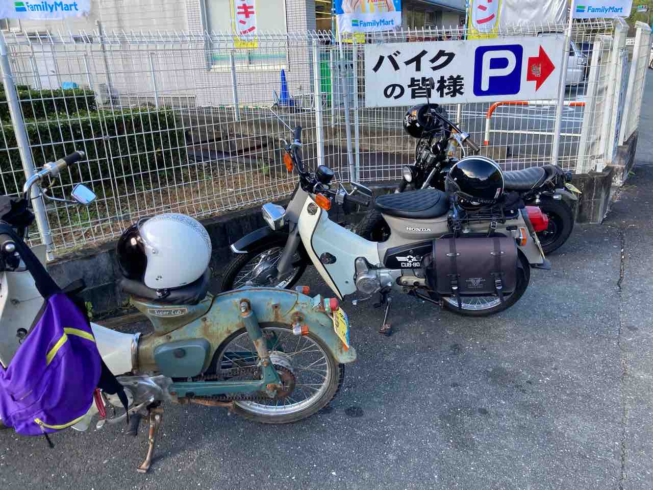 既にほぼ満車になっていた駐車スペースに何とか車とカブを停めてから登山口まで20分程歩いて向かいます。