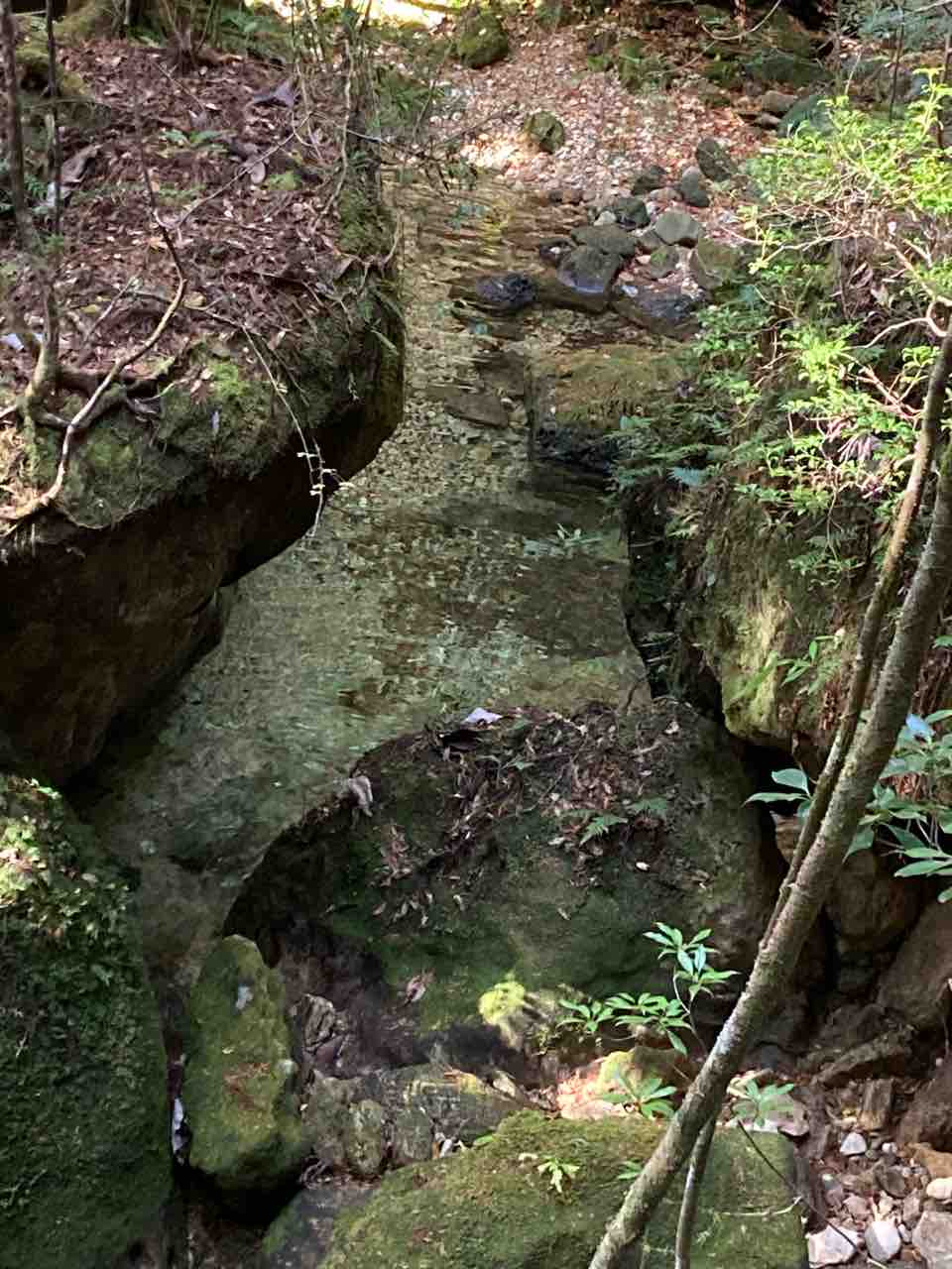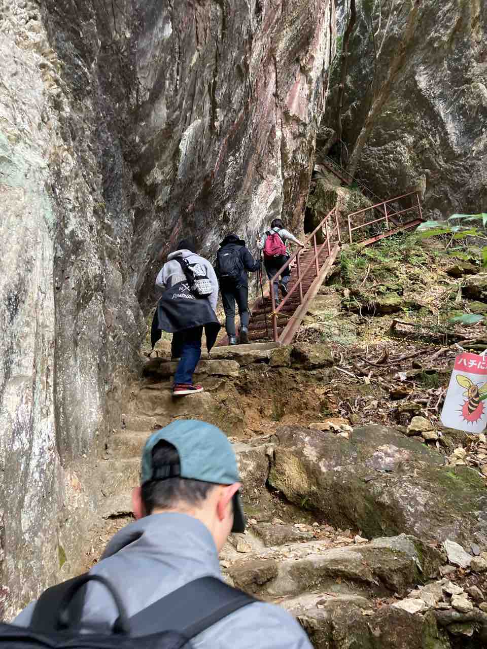 乳岩の近くに差し掛かると急な鉄階段の道になります。