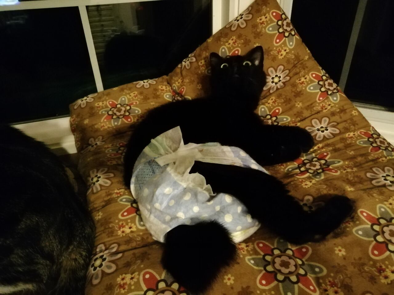 2020年05月27日 オムツ猫 我が家のクロ猫のウニちゃんウンチは良いのですが、小さい方が苦手です。時々そこらの壁や大事なカーテンを汚して愚妻に追いかけられています。その割に布団で一緒に寝るのが好きだったりして悩みます。仕方がないのでオムツをさせる事にしました。う 「ネコの部屋」カテゴリの最新記事 < 前の記事次の記事 > コメント コメントフォーム 名前 コメント 記事の評価 リセット リセット 顔 星 情報を記憶 コメントを投稿する