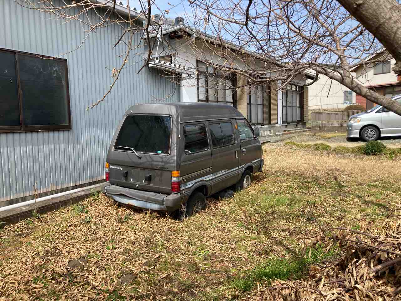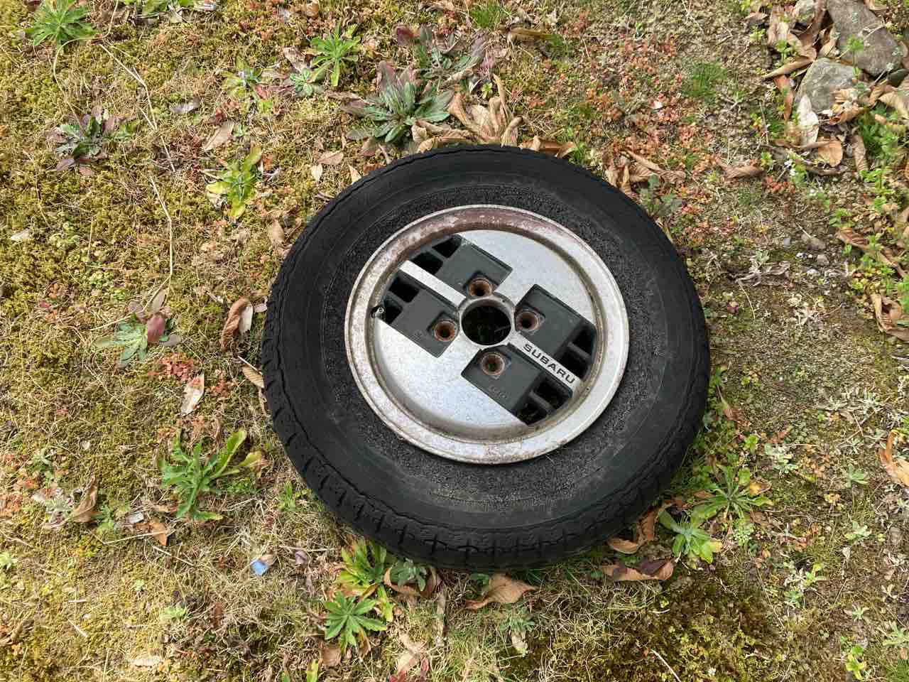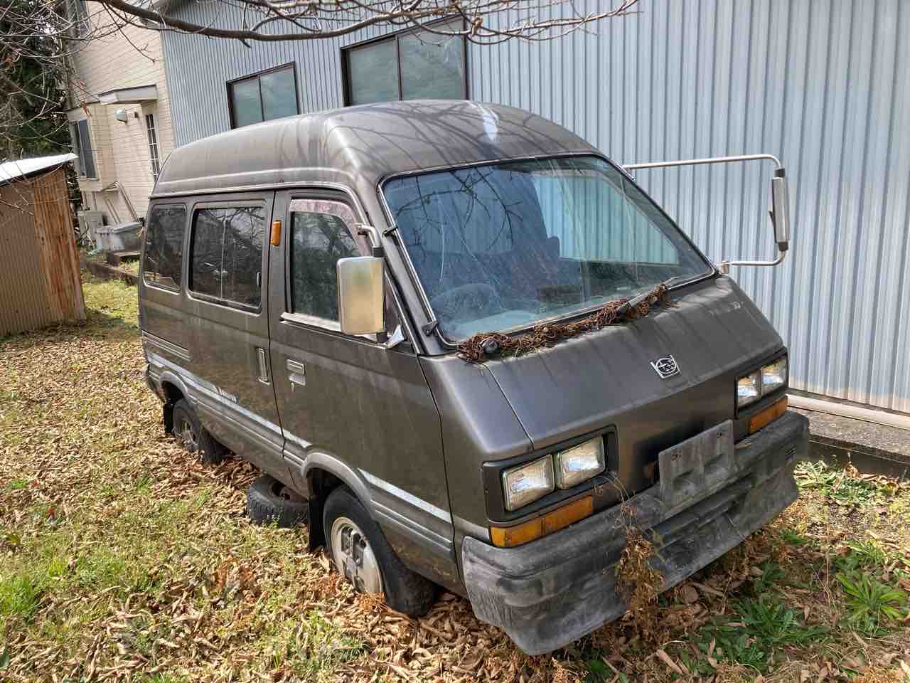 2022年03月25日 スバルドミンゴ 職場近くの栗畑に佇む軽のワンボックス前から存在は知っていましたが、あまり気に留めて居ませんでした。今回、ふと見にいってみると。ちょっと珍しい?軽箱ではなく、スバルのドミンゴでした。七人乗りの1000cc思ったより程度良さそうで、欠品も無さそう。室内には少しだけ荷物が入っています。前二本だけ純正と思われるアルミでしたが、近くにもう一本転がっていました。