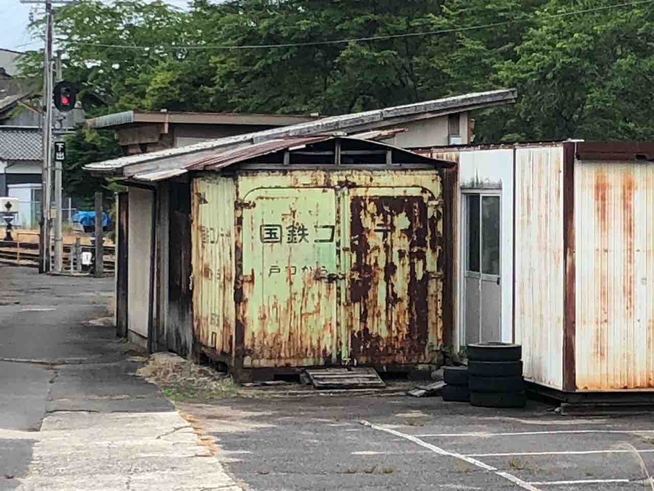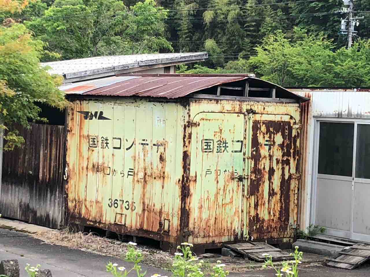 2022年06月13日 国鉄貨物コンテナ 明智鉄道の岩村駅構内の端に黄緑色の錆びたコンテナ発見近づいてみると、はっきり「国鉄」文字なんか屋根が掛けてあります。横には「JNR」も残っていました。国鉄明智線時代を偲ばせノスタルジーを感じます。このままずっと残しておいて欲しいものです。